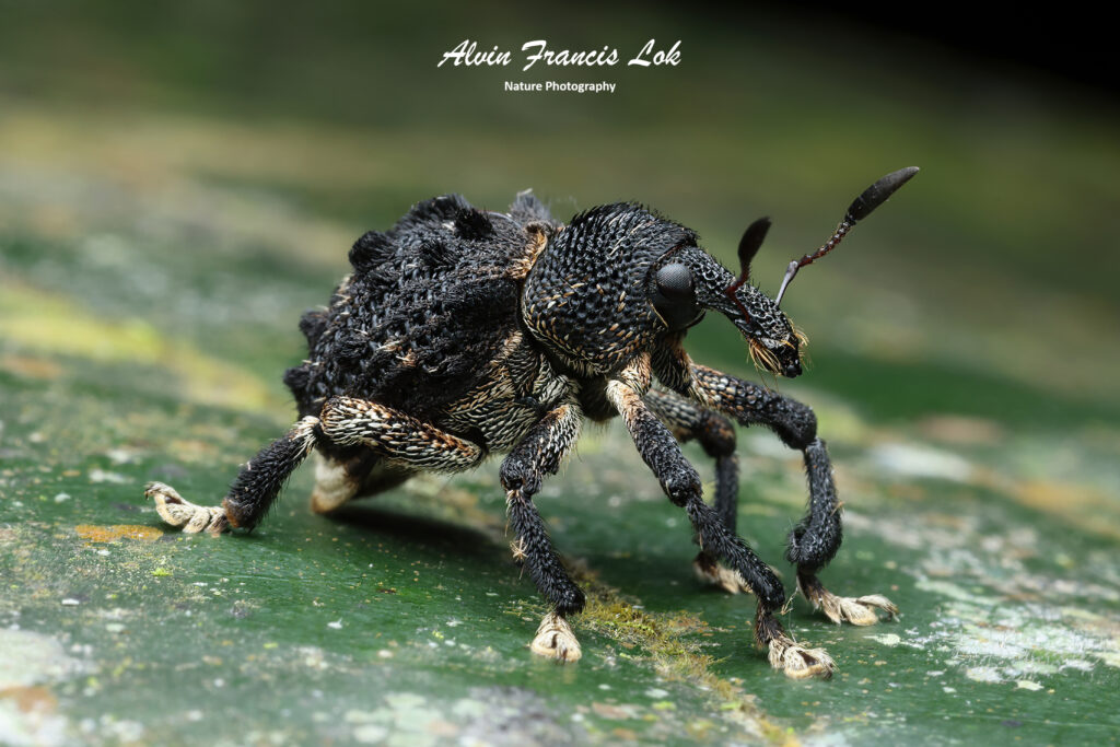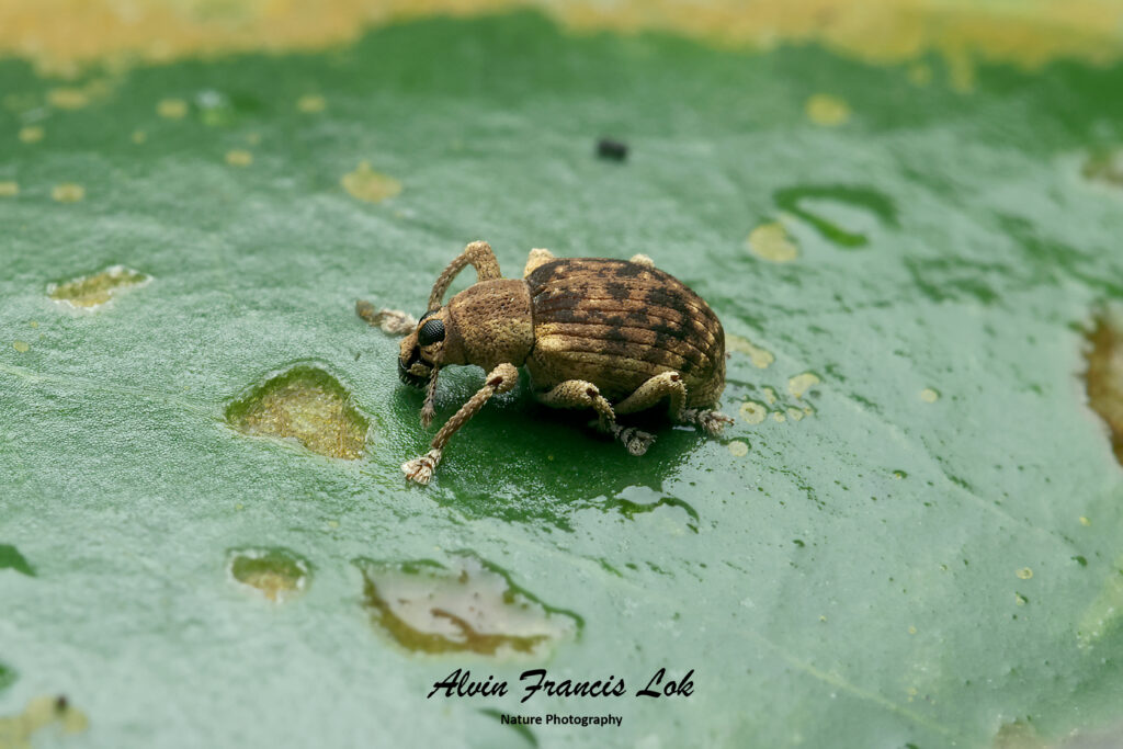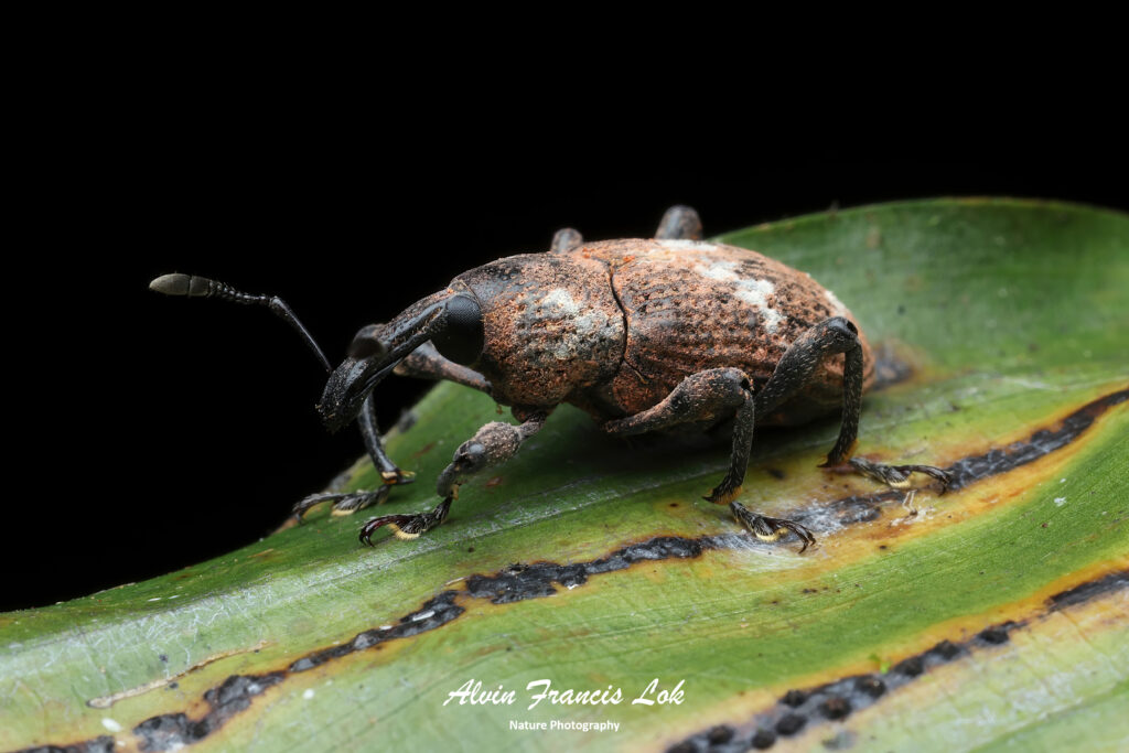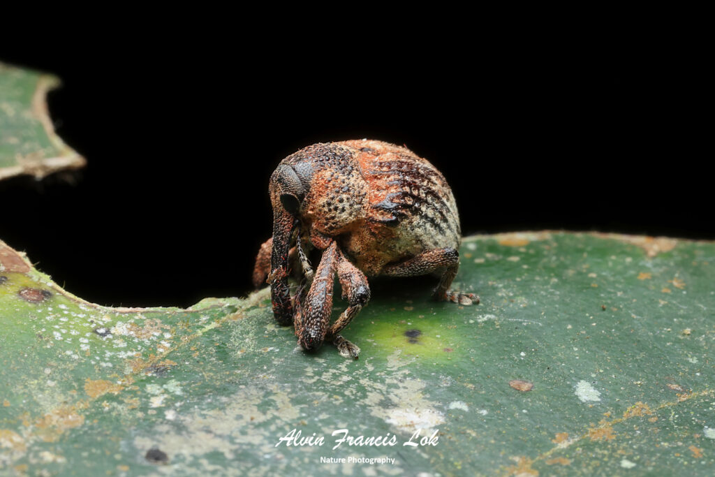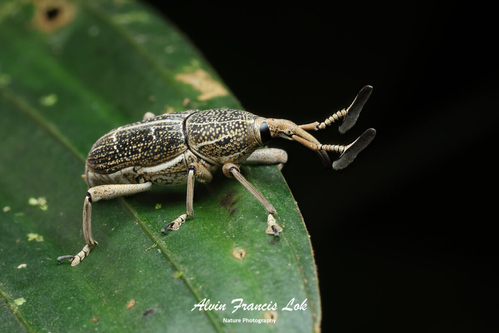 Curculionidae are commonly called snout beetles and what many of us are familiar as true weevils. They are one of the largest animal families with 83,000 species in 6,800 genera described globally. Most weevils have long, distinctly elbowed antennae that may fold into special grooves on the snout. Many have no wings, whereas others are excellent fliers. Most are less than 6 mm in length, although the largest exceed 80 mm. The majority of these true weevils feed exclusively on plants. The fleshy, legless larvae of most species feed only on a certain part of a plant, such as the flower head, seeds, fleshy fruits, stems, or roots. Many of the larvae tend to be specific feeders, feeding either on a single plant species or on closely related species. The adult weevils tend to be less specialized in their feeding habits.